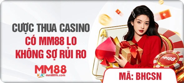 Chương trình hoàn trả casino MM88 – thua không cần lo là một trong những ưu đãi hấp dẫn nhất dành cho người chơi yêu thích các trò chơi casino trực tuyến. Với mức bảo hiểm lên đến 28,888 điểm cùng điều kiện cược cực kỳ đơn giản, đây là cơ hội giúp hội viên giảm thiểu rủi ro và gia tăng cơ hội chiến thắng.
